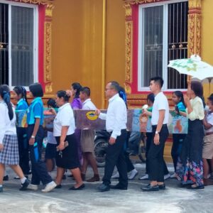 วันอังคาร ที่ 11 กุมภาพันธ์ พ.ศ. 2568 นางสาวจินตนาพร แจ้งขาว ผู้อำนวยการโรงเรียนบ้านวังพระเคียน มอบหมายนางพิชานัน ทวีกายุจันทร์ และนางวารินทรัตน์ จองเดิน นำนักเรียนเข้าร่วมกิจกรรมวันมาฆบูชาและพิธีแห่ผ้าห่มพระธาตุเจดีย์ศรีสตูล ณ พระธาตุเจดีย์ศรีสตูล วันนิคมพัฒนาราม (ผัง 7) ตำบลนิคมพัฒนา อำเภอมะนัง จังหวัดสตูล