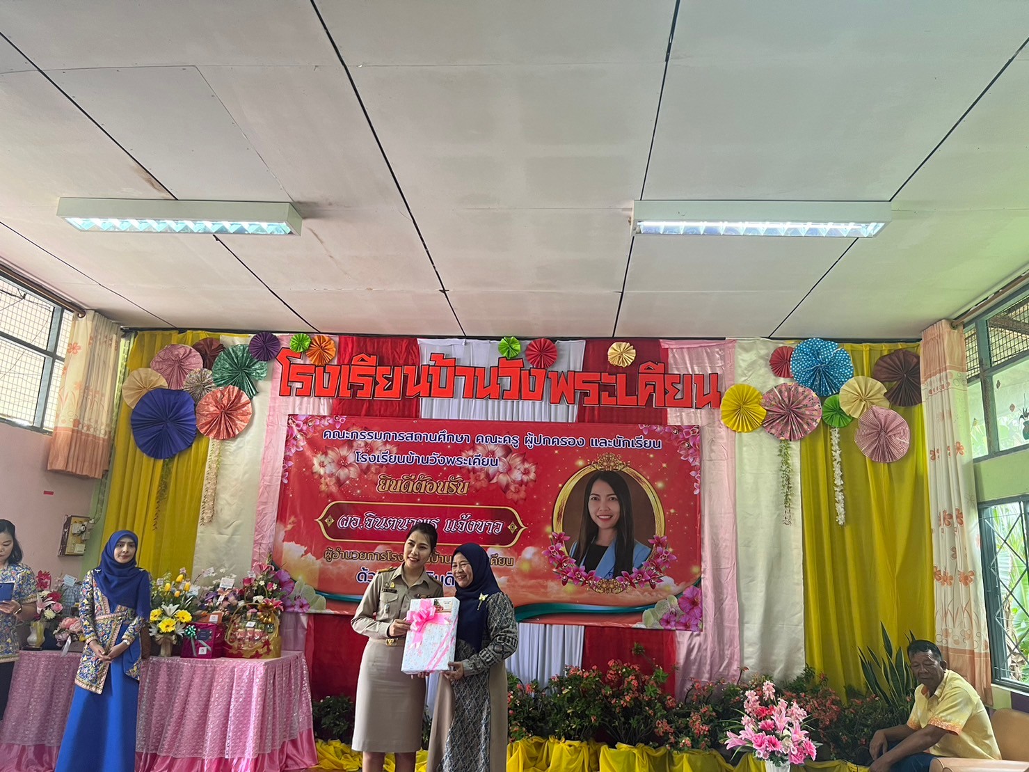 วันพุธ ที่ 10 มกราคม 2567 นายเชษฐ บุตรรักษ์ นายอำเภอมะนัง คณะกรรมการสถานศึกษา คณะครู บุคลากร นักเรียน ผู้ปกครอง โรงเรียนบ้านวังพระเคียน และผู้นำส่วนท้องถิ่น ร่วมต้อนรับ นางสาวจินตนาพร แจ้งขาว เนื่องในโอกาสเข้ารับตำแหน่งผู้อำนวยการโรงเรียนบ้านวังพระเคียน บรรยากาศเต็มไปด้วยความปลื้ม ปิติ ยินดี
